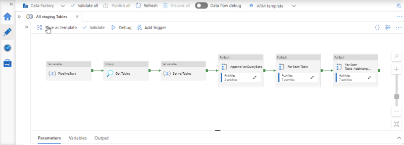 If you double-click any of the Execute pipeline boxes, a new tab will open with the pipelines contained in that step.