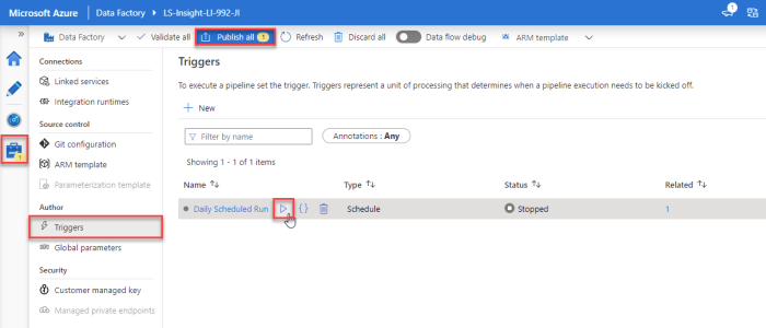 Now the setup for LS Insight Azure Data Factory and Data Warehouse is done and will run as the trigger schedule settings specify.