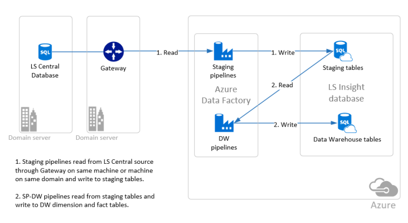 This setup wizard will go through the steps needed to create an instance of LS Insight in Azure using Azure Data Factory pipelines to move data from the LS Central source database to the LS Insight staging tables and from the staging tables to the data warehouse tables.